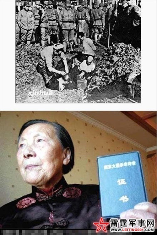 我身子全在泥水里,只有头露在上面。子弹从我的肩上穿过,棉袍子里的棉花都打出来了。机枪扫过后,日本兵又用刺刀一个一个地捅。没有打死的哇哇地叫。我在江水中朝岸上看,只见刺刀的亮光一闪一闪的,日本兵一边‘嗨!嗨!’地喊,一边朝乱七八糟的死尸堆里用刀戳,惨叫声听得人汗毛都要竖起来!