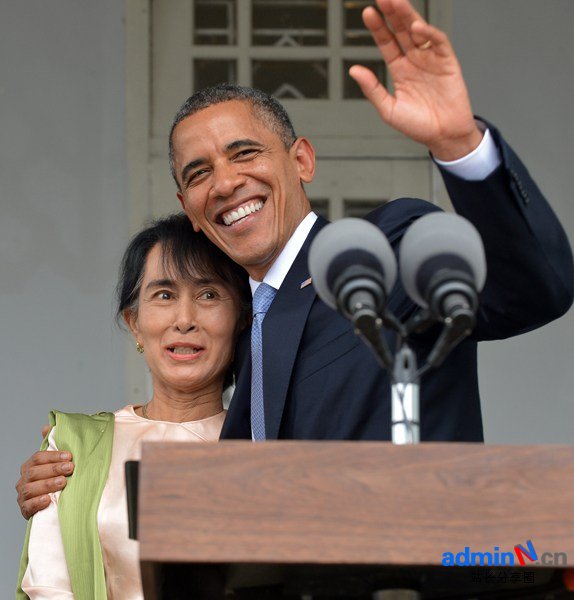 当地时间11月19日,美国总统奥巴马对缅甸展开了历史性访问,成为首位在位期间出访缅甸的美国总统。奥巴马和缅甸反对派领导人昂山素季举行会晤并共同召开记者会。会上奥巴马称赞昂山素季为缅甸的民主作出贡献,并表示美国将支持缅甸的民主进程。记者会上奥巴马拥抱亲吻昂山素季。
